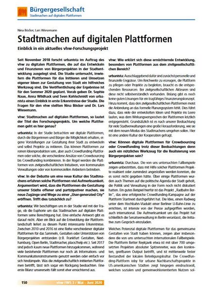 Wildhack, A., Naue, S., Kohlschmidt, S. (2022): Entwickeln. Finanzieren. Umsetzen. Stadtmachen auf digitalen Plattformen. vhw-Schriftenreihe Nr. 37. Berlin.