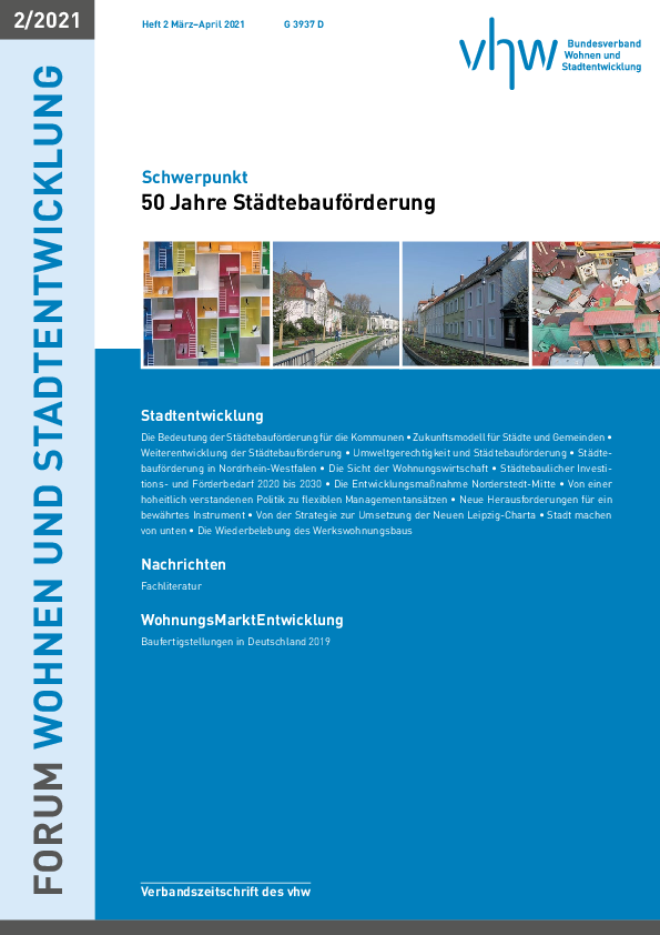 50 Jahre nach Einführung des Städtebauförderprogramms im Jahre 1971 in der damaligen Bundesrepublik lohnt sich heute anlässlich dieses "runden Geburtstages" sowohl ein Blick zurück, als auch der Ausblick in die Zukunft. Die vorliegenden Beiträge dieses Schwerpunktheftes beleuchten vor diesem Hintergrund das Programm aus verschiedenen Perspektiven und beschäftigen sich neben der Würdigung des Geleisteten auch mit den aktuellen und künftigen Herausforderungen. Ganz aktuell ist die Neustrukturierung der Städtebauförderung 2020 in drei übergeordnete Programme mit Querschnittsaufgaben in der Nachhaltigkeit, vor allem im Klimaschutz, ein Zeichen der Flexibilität des Programms. Wie diese Neustrukturierung trägt, wird sich dabei in den kommenden Jahren zeigen. Und ganz nebenbei: Ähnlich populär wie die Städtebauförderung dürfte vielleicht nur noch ein weiteres "Geburtstagskind" sein, das ebenfalls in diesem Jahr 50 Jahre alt wird – das "Tor des Monats".