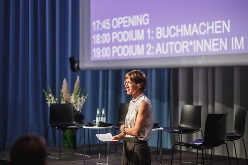 Nach einem schnellen Umbau ging das Programm in den zweiten Teil des Abends über. Mit zwei Podiumsdiskussionen sollten sowohl der Konzeptionsprozess des Buches zum Ausdruck kommen als auch ein Dialog zwischen Autorinnen und Autoren initiiert werden. Die Begrüßung und Einleitung übernahm Prof. Dr. Jürgen Aring (Erster Vorstand vhw e. V.), die nachfolgenden Podien wurden von Marietta Schwarz moderiert.