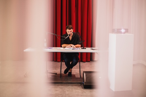 Zur Einstimmung hatten den Besuchenden die Möglichkeit, bei Snacks und Getränken die künstlerischen Beiträge an vier Stationen zu erleben. Ziel war es, das Buch über den Prozess des Lesens erlebbar zu machen und den Entstehungsprozess der Publikation sowie die spannende Verschränkung von wissenschaftlichen und künstlerischen Arbeiten zum Thema WohnWissen sichtbar zu machen. Das künstlerische Programm wurde unter der Leitung von Dr. Carolin Genz in Zusammenarbeit mit Stella Flatten konzipiert und kuratiert, wodurch eine inspirierende und anregende Atmosphäre für alle Besucherinnen und Besucher geschaffen wurde. Die Leseperformance „Blättern & Lesen“ lud dazu ein, sich Sequenzen aus zehn ausgewählten Beiträgen des Buches vorlesen zu lassen. Lesender war der Journalist, Podcaster und Moderator Axel Rahmlow (DRadio Kultur), u. a. Host des Podcasts "STADTANSICHTEN" der vhw Forschung.