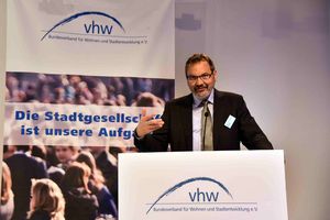 Dr. Peter Kurz, Verbandsratsvorsitzender des vhw, (Bild links) begrüßte die Gäste. Die Blickwinkel zu unserer Fokusgruppe sind sehr unterschiedlich. Mal wirken sie als Mobilisierer, Macher, Verstärker, dann wieder als Lobbyisten und möglicherweise auch als "Störenfriede". Oftmals treten sogar gleiche Akteure in unterschiedlichen Rollen auf. "Wir haben bei der Beschäftigung mit den Beteiligungsverfahren festgestellt, dass es sich dabei oft um etwas 'Exklusives!´ handelt.", so Kurz. Und daher ist es wichtig die Fragen zu stellen: Bringt sich, wer kommt, auch ein? Findet er seinen Zugang? Helfen Intermediäre aktiv, um stillen und stummen Interessen auch eine hörbare Stimme zu geben?